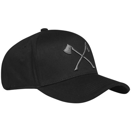 Czarna baseballówka wykonana w 100% z bawełny, z wyszywanym szarym motywem dwóch siekier. Możliwość